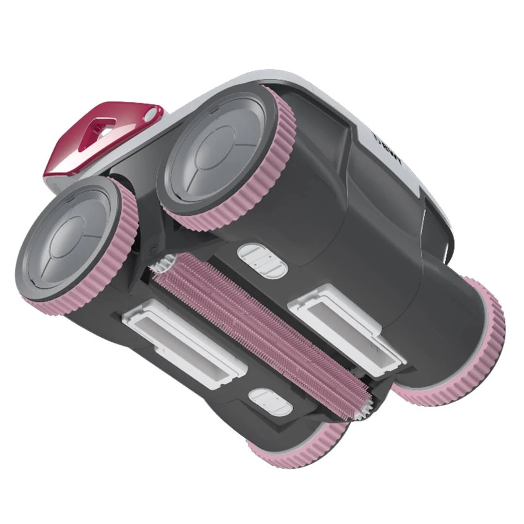 Grâce à ses 4 roues brosses de nettoyage, il déloge les saletés pour laisser la surface parfaitement propre. La brosse rotative supplémentaire assure un nettoyage impeccable du fond de la piscine.